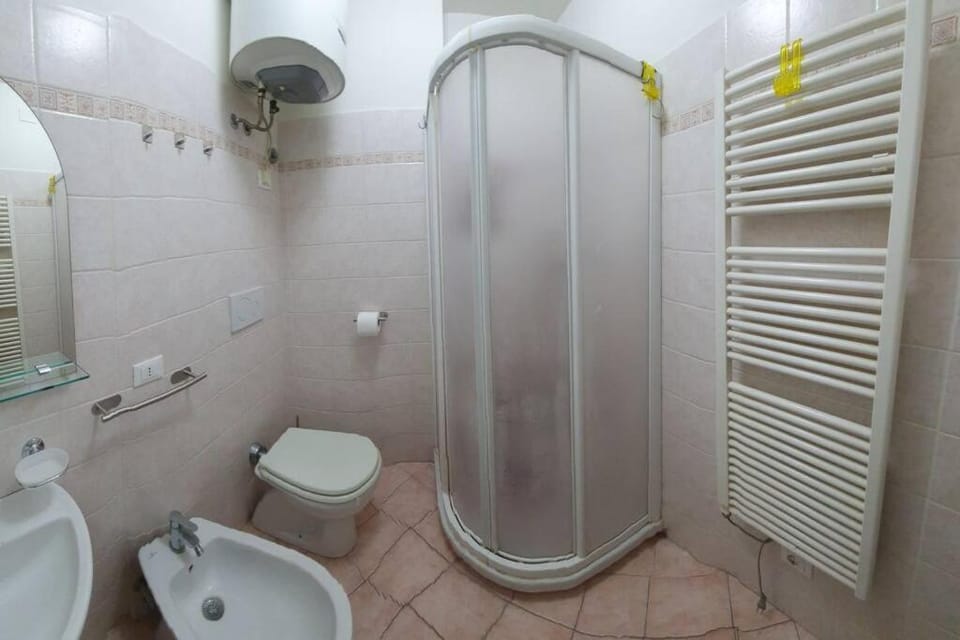 Servizi essenziali adatti a soggiorni brevi: biancheria bagno in numero insufficiente, attrezzi cucina mancanti per cucinare da sé, bagno con spazi molto stretti in cui è difficile muoversi.