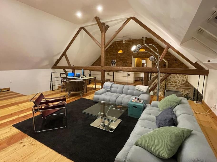 Le charme de la grange et la décoration .Le linge et les produits mis à disposition .