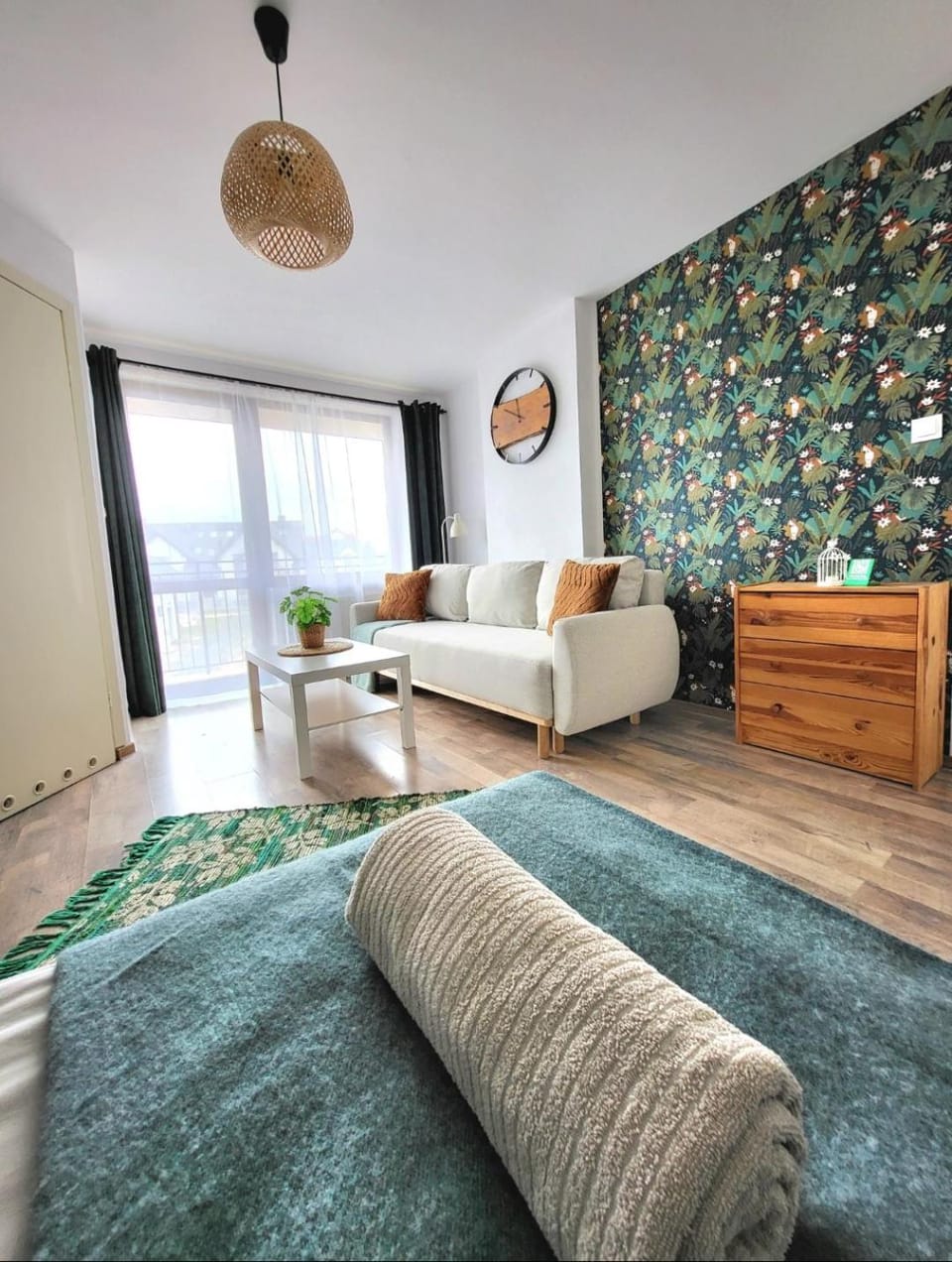 + balkon ze stolikiem, krzesełkami i suszarką,