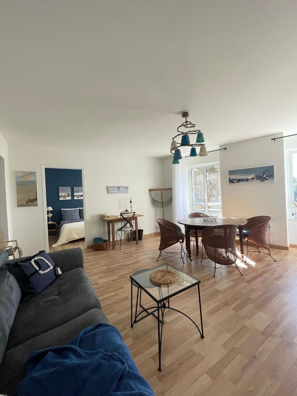 L’appartement dont la vue est époustouflante est agréable, joliment décoré, bien équipé . Eau bien chaude. WC séparé SB . Chambre cosy. Accès direct privatif dans les espaces verts. Place de parking nominative. Super communication avec Cecile à l’écoute. Des gâteaux et sucreries pour l’accueil. Proche port, bistrot, restaurant, balades. Bourg 10 mn pied par de jolies maisons.