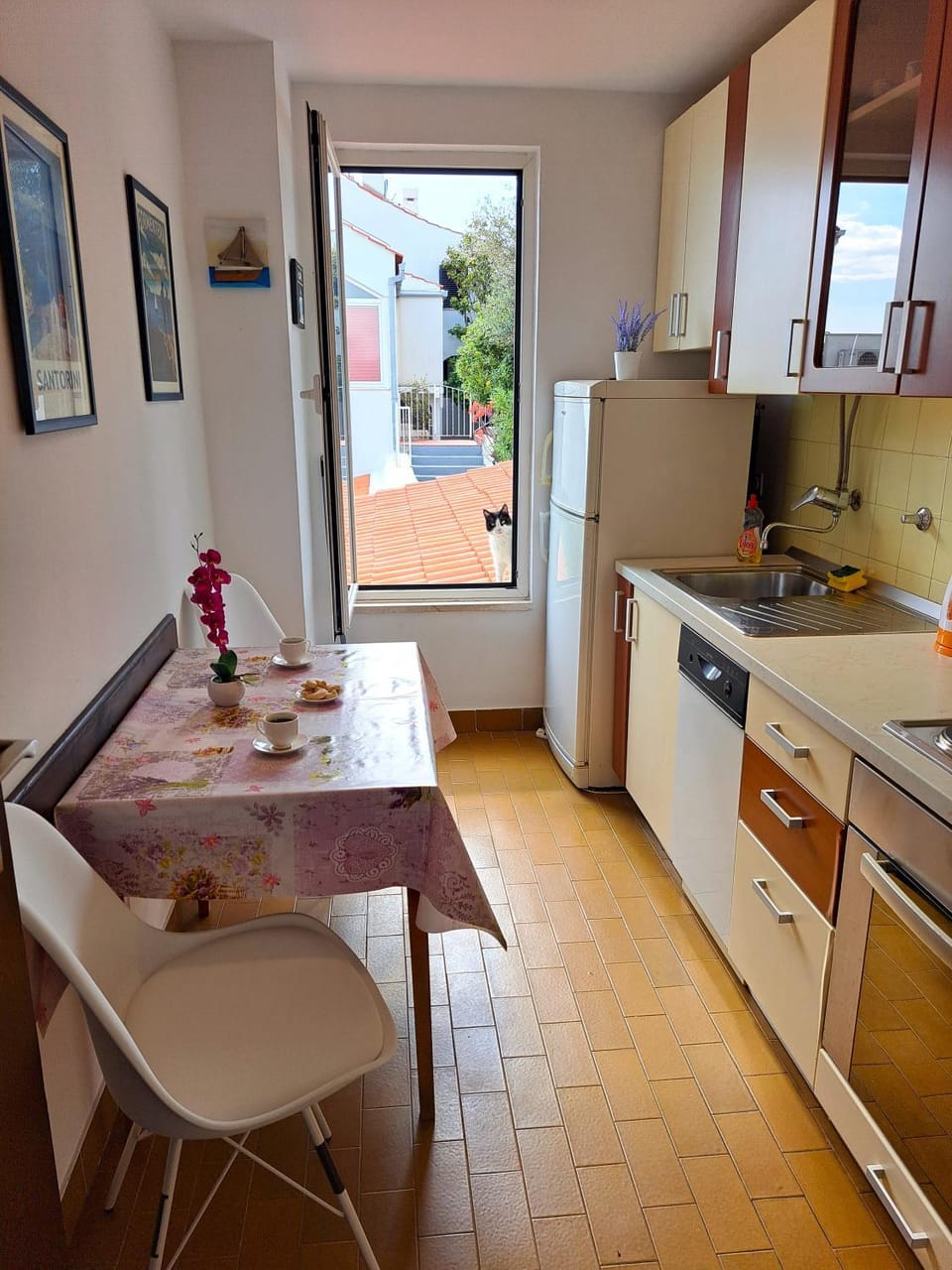 The host didn’t respond to any messages on booking.com that we sent months in advance and only reached out to us two days before check in. I then asked if there was a TV in the apartment and the host said “yes there is”, so I took my laptop on the holiday just to use it with the TV. When we got there, there was no TV and I carried my laptop for nothing. They left an underwear hanging on the flowers that were displayed on the table, and although the host sent us a bottle of wine as an apology, she did not collect the dirty underwear from the apartment. The washing machine does not work so we could not wash our clothes. The dishwasher does not work. Everything is very very old. The kitchen table and one of the chairs were about to break. One of the mattresses was so old that it had a large dent in the shape of a body. The small couch in the bedroom was dirty with dust and crumbs. The floors were dirty, especially under the beds which looked like hasn’t been cleaned for many months. There is no living room and the kitchen table only has space for 3 people, so if you are in a larger group you need to sit out in the sun in the balcony. In the end, the host did not accommodate our request to extend check out to 11:30am.