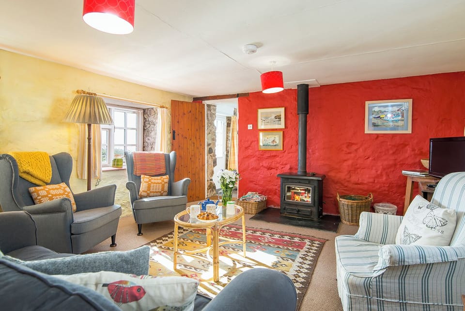 The Barn is a quaint conversion and extension to a picture postcard stone cottage set in the tiny hamlet of Trelerw which is made up of just a handful of houses, only 250 yards from the Pembrokeshire Coastal Path down an unmade lane surrounded by National Park and rolling countryside. The Barn with its rough, whitewashed, plastered walls and beams retains all its original character. The kitchen/diner while having mod cons has a simple traditional cottage look with scrub pine units, the spacious lounge with lovely sea views has a woodburning stove which makes a cosy retreat on a chillier evening. A ground floor bedroom has been added while stairs from the lounge lead up to two further pretty bedrooms above. Wake in the master bedroom and soak up the wonderful sea view out over St Brides Bay. Sit to the front of the cottage to really soak up the wonderful sea view a veritable sun trap where you can enjoy an alfresco meal or alternatively an arch leads to a tiny, sunken island garden to the side of the cottage. The Barn is conveniently located with St Davids and all its facilities just 1 mile away, as well as Caerfai beach, whilst just a little further is the sandy, watersports beach of Whitesands popular with professional and amateur surfers alike. Join the Pembrokeshire Coastal Path and explore this stunning coastline leading you round St Brides Bay. A real gem of a holiday cottage.Please Note: Cot and highchair are not provided, please call 01437 765765 if you would like to hire them from Coastal Cottages.