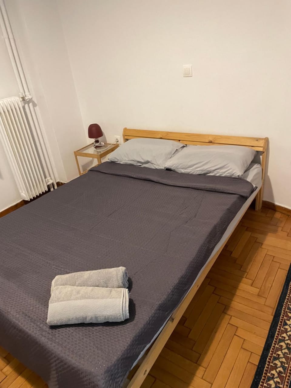 Tenía solo sábana de abajo y el acolchado era de cama chica, por lo que tuvimos que ponerlo cruzado para que nos tape pero quedaba corto.