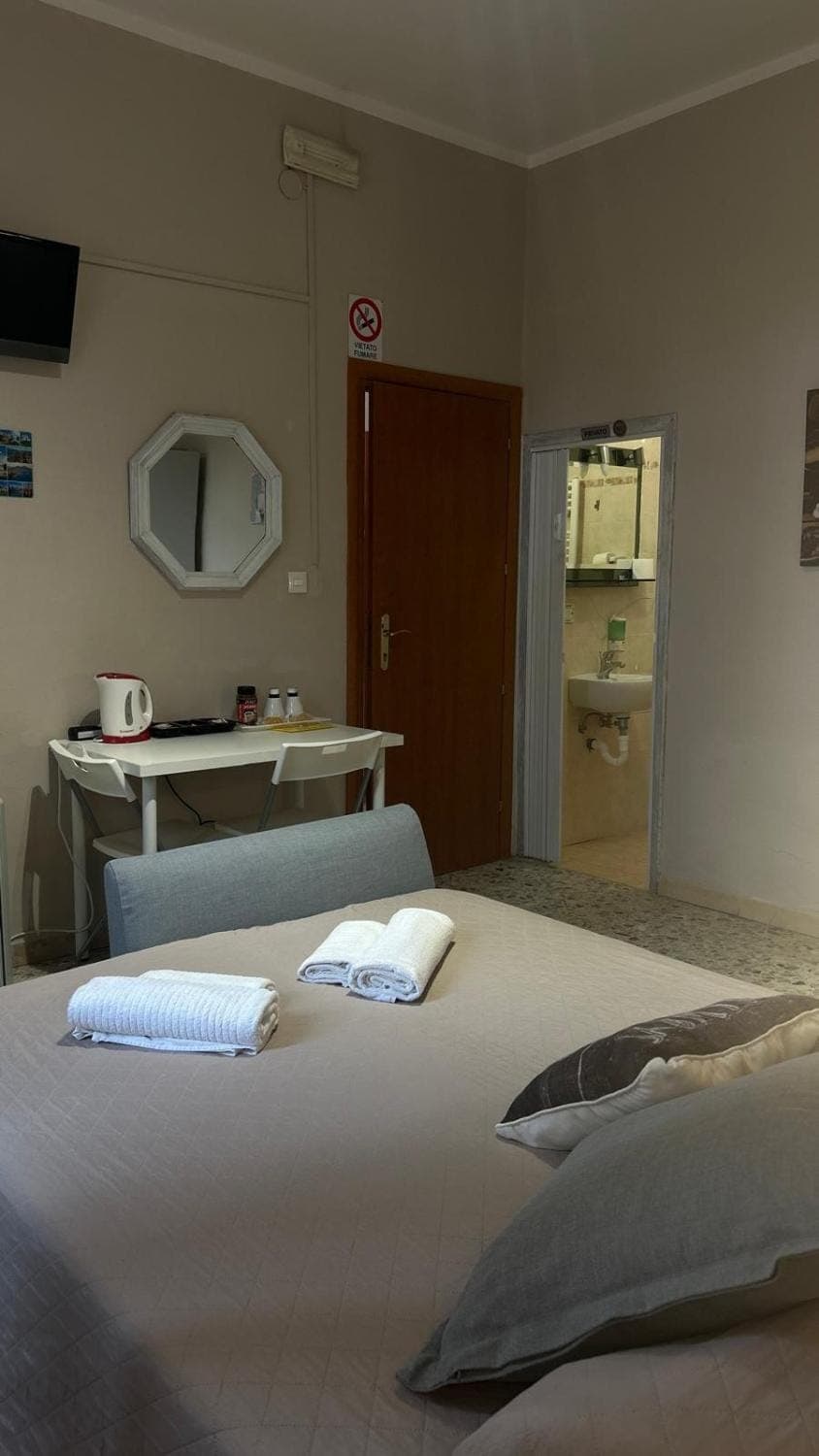 La stanza non era riscaldata, al nostro arrivo l'ambiente era gelido considerate poi le temperature esterne. L'unico riscaldamento disponibile era un piccolo radiatore che al nostro arrivo abbiamo trovato spento, che sarebbe dovuto bastare per la stanza e per il bagno. Abbiamo atteso per due ore che si scaldasse l'ambiente ma non è stato sufficiente. Le coperte in dotazione inoltrr erano esigue, piccoli pile inadeguati. Abbiamo provato a contattare il proprietario per chiedergli se potevamo attivare il fancoil ma ci ha detto che il radiatore sarebbe stato più che sufficiente. Nessun tentativo di venirci incontro. Abbiamo pertanto deciso di lasciare la stanza e di cercare altrove.