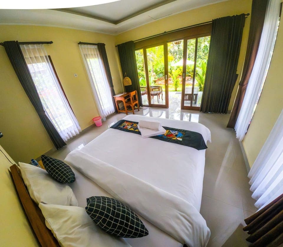 Gusti’s villa is simply wonderful! Surrounded by greenery, peace and quiet, with a beautiful pool where you can relax and enjoy nature. Gusti and his family are truly exceptional: welcoming, helpful, and always ready to meet our needs. Breakfast was rich and delicious, prepared with care. For dinner, he provided us with a list of great local restaurants and even offered to drive us there or lend us his scooter so we could explore freely. A genuine and warm hospitality that made us feel at home.
