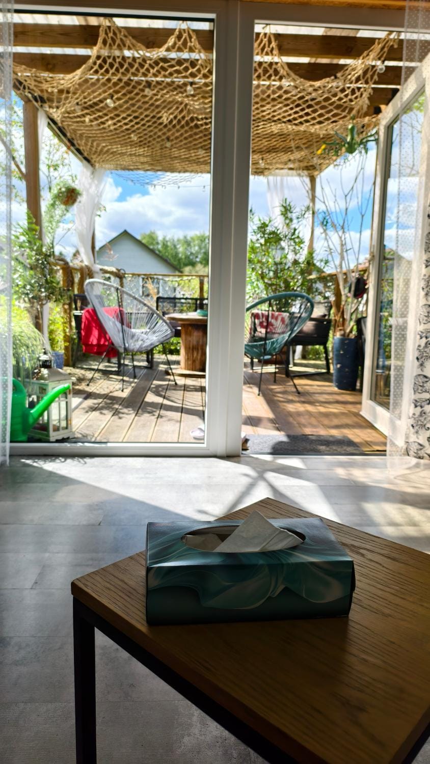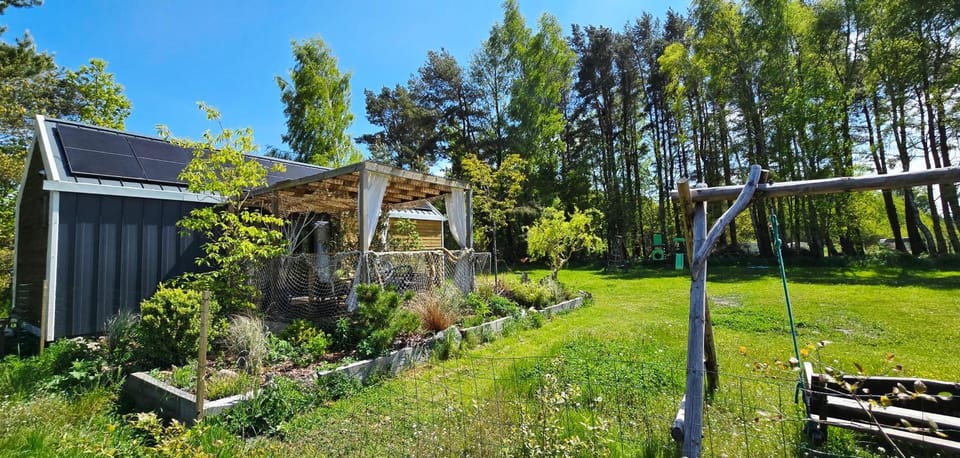 Przepięknie urządzony, dobrze wyposażony domek, który jest położony na wydzielonym, sporym terenie co zapewnia pełną prywatność. Z jednej strony teren odgrodzony jest małym laskiem. Wokół domku jest przepiękny ogród, można też robić ognisko, na terenie są huśtawki i zjeżdżalnia dla dzieciaków, bardzo miło siedzi się również na tarasie. Jest mnóstwo wygodnych krzeseł, leżaków i mebli ogrodowych. Kuchnia w domu jest dobrze wyposażona, ma nawet mikrofalówkę i malutką zmywarkę. W domku było wszystko czego potrzebowaliśmy. Na dodatek domek jest położony bardzo blisko plaży i to obok bocznego wejścia 18 (a nie wejścia głównego w Dębkach), gdzie jest zdecydowanie mniej ludzi. Właściciele są bardzo uprzejmi i służą pomocą, pozostają w kontakcie w razie pytań.