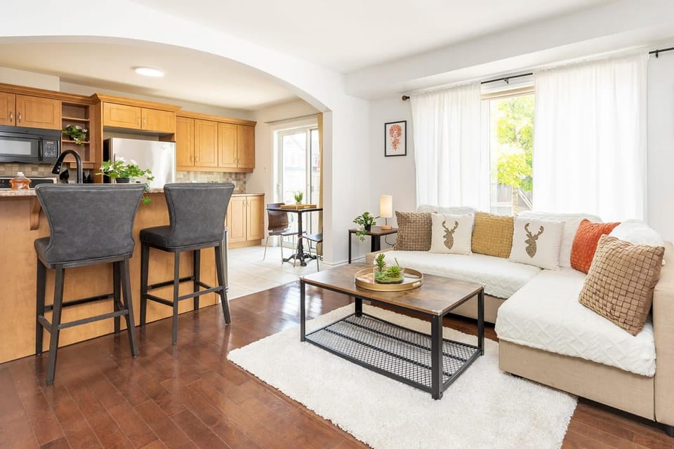 Cozy Modern 4BR Home with Sunny Patio offers accommodations in Ottawa, a 17-minute walk from Canadian Tire Centre and 15 miles from Canadian War Museum. Both free Wifi and parking on-site are accessible at the vacation home free of charge.
