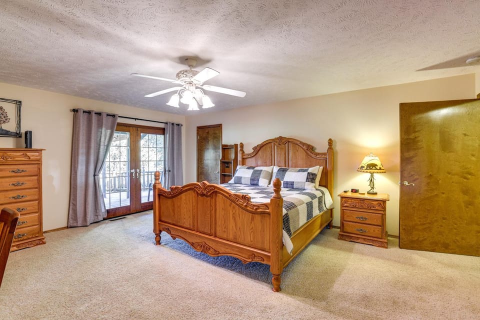 Just a Cast Away Cassville Cabin with Covered Deck is located in Cassville, just 23 miles from The Great Passion Play and 24 miles from Onyx Cave Park.