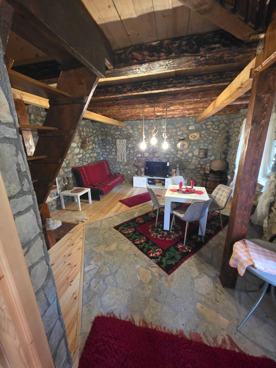 It was unique housing, big parking area, big garden with a small farm. Owners were friendly and they even brought us tomatoes and local drink.
