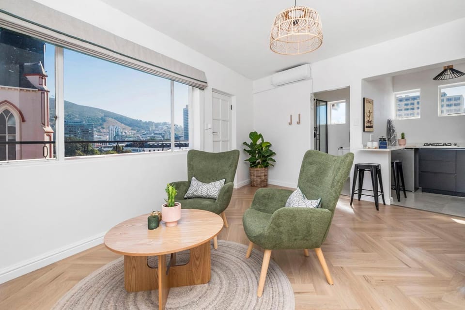 The CBD is convenient to Uber to the Waterfront, departure point for Robben Island Ferry, and the CitySightSeeing/Hop on Hop Off bus pickup point at Long St, as well as Bree St for dancing/drinks. However, the reviews should be honest that this location is next to a soup kitchen, so there are days when homeless people from all over the city come for a hot meal. Homelessness is exacerbated by entire airbnb buildings like this itself which raises the rentals and reduces the amount of long-term housing for residents. The view from the room on one side is a student hostel and the soup kitchen. The view from the otherside of your room is Table Mountain and the Church as well as Parliament which is undergoing (loud) construction. At night you can hear a lot of noise in the CBD which may disrupt your sleep. There is Gardens Mall up the street where you can buy water, sim cards, and other supplies. Mr Simba is the property manager is patient and helpful and gave our keys in person. Interiors are pleasant and well-decorated. Kitchen has gas stove, air fryer and fridge. Hot water 24/7 makes for nice hot showers. Plenty of room with spacious cabinets. Coffee place downstairs has great coffee and delivers. Women solo travelers should take extra safety precautions if walking around the area especially at night.