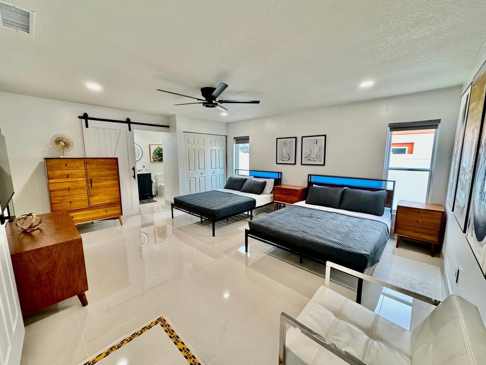 Indulge in a peaceful retreat at Luxurious Spacious Modern House w/ AC + Heated Pool, our elegant House in Greater Carrollwood. Enjoy amenities including Air conditioning, Balcony/Terrace and Dryer, and more.