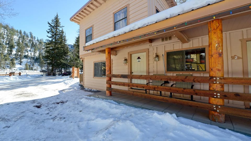 Experience vacation in Red River with our House, Hacienda on Pioneer Creek - In Town - WiFi - Cable - Washer/Dryer - Gas Fireplac. Enjoy amenities such as Balcony/Terrace, Dryer and Fireplace, and more.