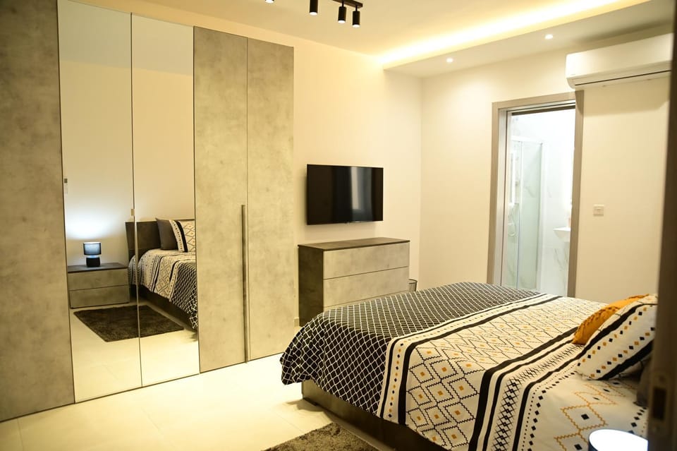 The apartment was ultra modern and perfect for a family of 5. Everything that we could have required was provided for including a cot and high chair and essential items like a washing machine and dishwasher made our lives much easier. Washing powder and dishwasher tablets were provided also. There was also a lovely welcome package of essential food and drinks for us which was a lovely touch. Our amazing hosts were available at all times to help with any queries that we had. Location was perfect for access to Mellieha with shops and restaurants nearby and it is very close to the bus stop. We hired a car also (highly recommended) so having underground parking in the apartment block was very helpful.