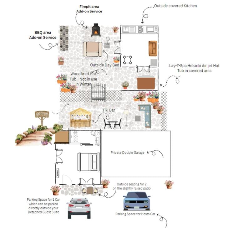 Parking is not specified as an available amenity at The Wee Stay - Lazy Spa with guest suite and outside Kitchen. For more information, we encourage you to contact the property about where to park.