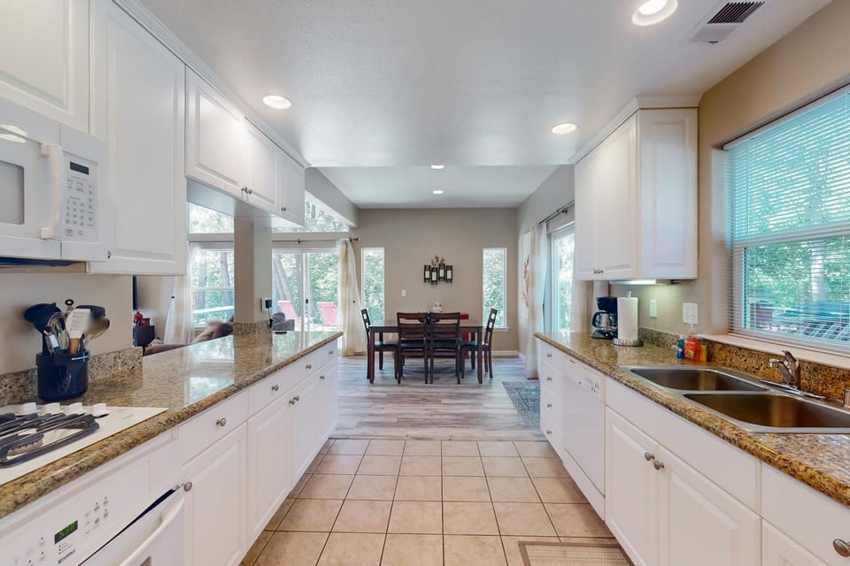Indulge in a peaceful retreat at Charming home w/jacuzzi, hiking trails, games, near sandy beaches in Bass Lake!, our elegant House in Bass Lake. Enjoy amenities including Air conditioning, Balcony/Terrace and Dryer, and more.