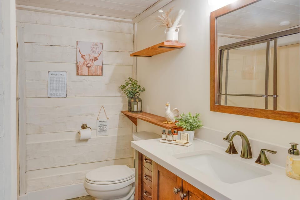 What amenities are available at about 10 Mi to Downtown Murfreesboro Area Cabin?