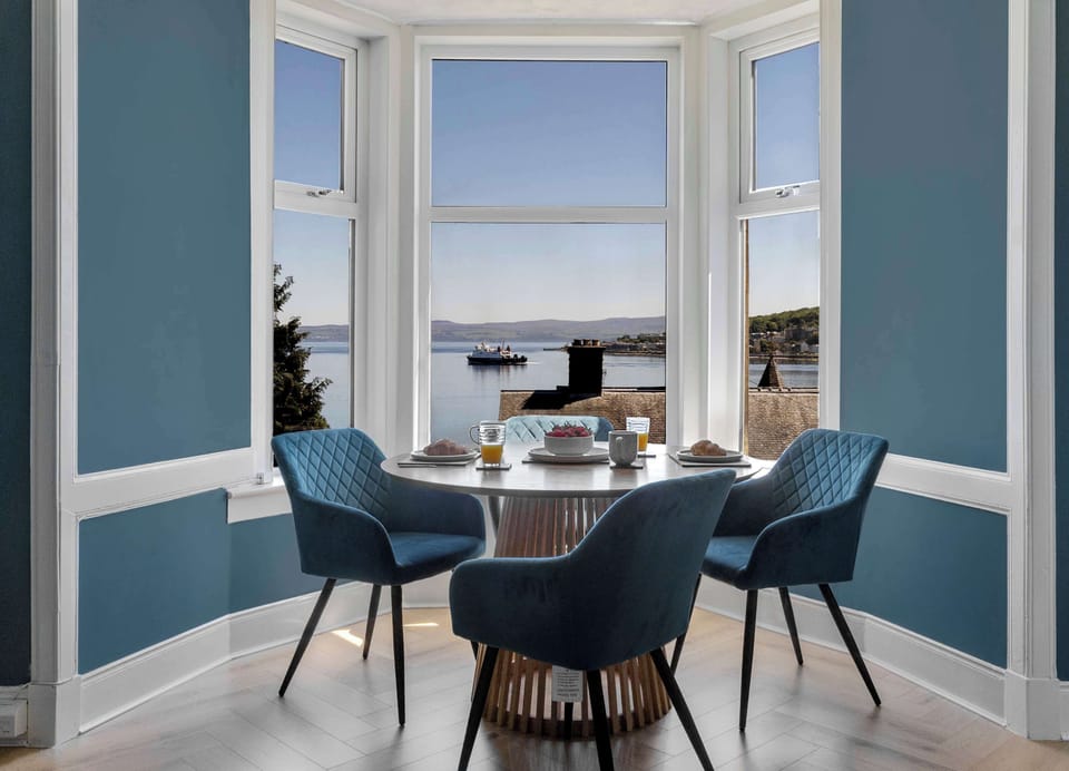 One of the standout features of The Bayview is its breathtaking vista, captured perfectly through the bay window. Here, guests are treated to an uninterrupted panorama that spans across the picturesque Rothesay bay and stretches out to the serene waters of Loch Striven. It's a captivating sight that truly embodies the essence of coastal charm.