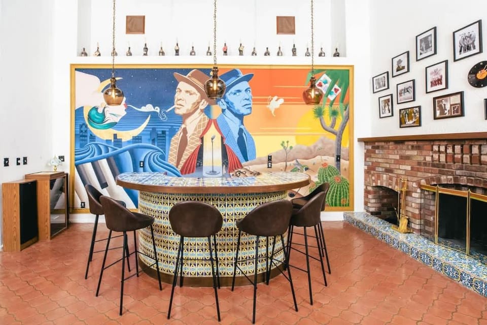 Enjoy the best of Yucca Valley in our Villa, Stunning Views, Speakeasy Bar, Pool, Hot Tub, Sauna, Cold Plunge, Outdoor dining. A stunning property with amenities including Air conditioning, Dryer and Fireplace, and more.