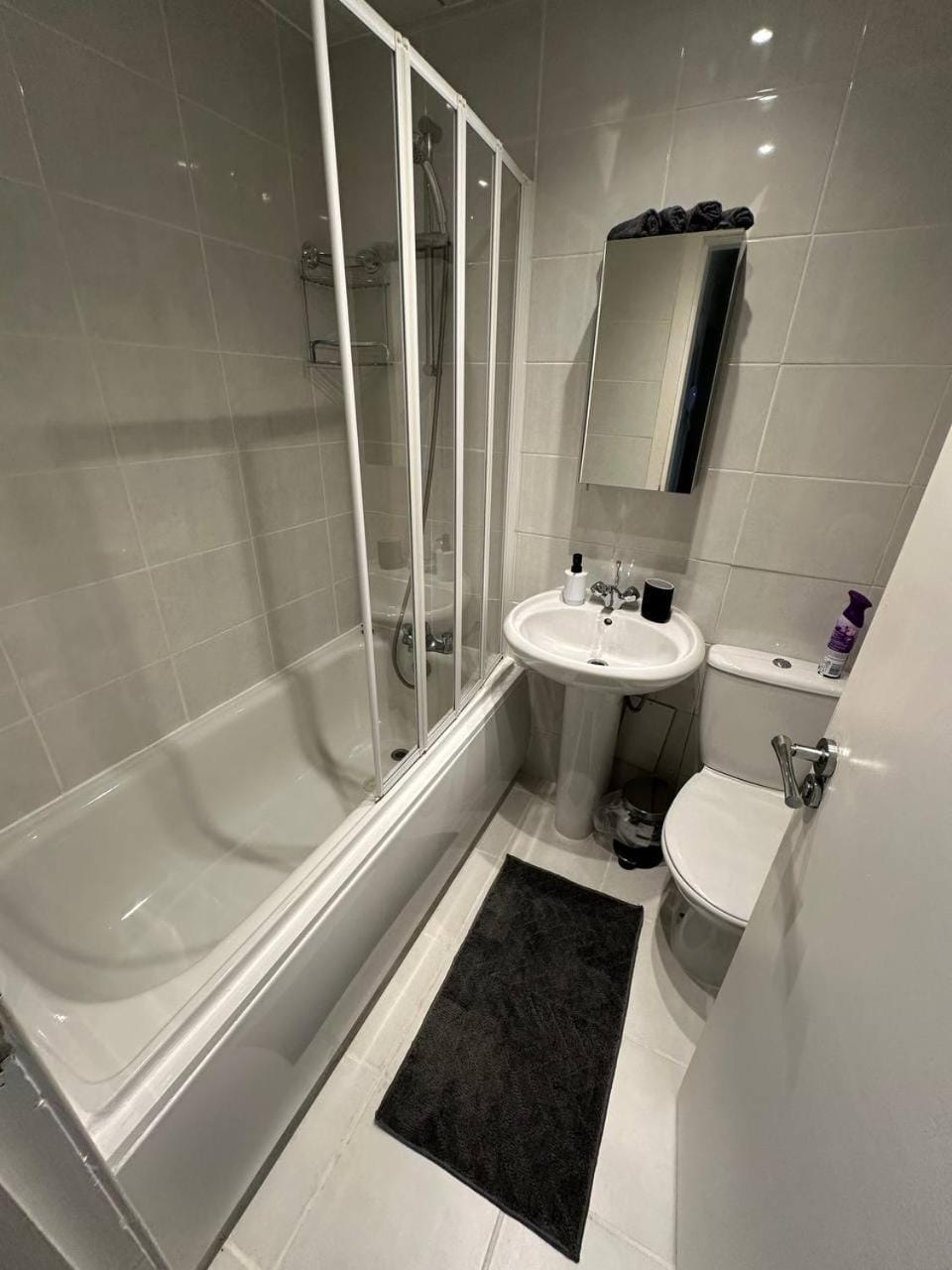 Only one bathroom and toilet. For an apartment that can accommodate 8 people, one bathroom and toilet is simply not enough. The only mirror in the apartment was on the bathroom cabinet, not at all adequate. Due to the storm, the rest of the family were unable to travel to Clydebank which was just as well as the lack of adequate bath/toilet facilities would have been quite chaotic. We had trouble sleeping on the Saturday night due to very loud music being played in the downstairs apartment. Which went on until the early hours of the morning. Constant repetitive thumping .... not at all pleasant