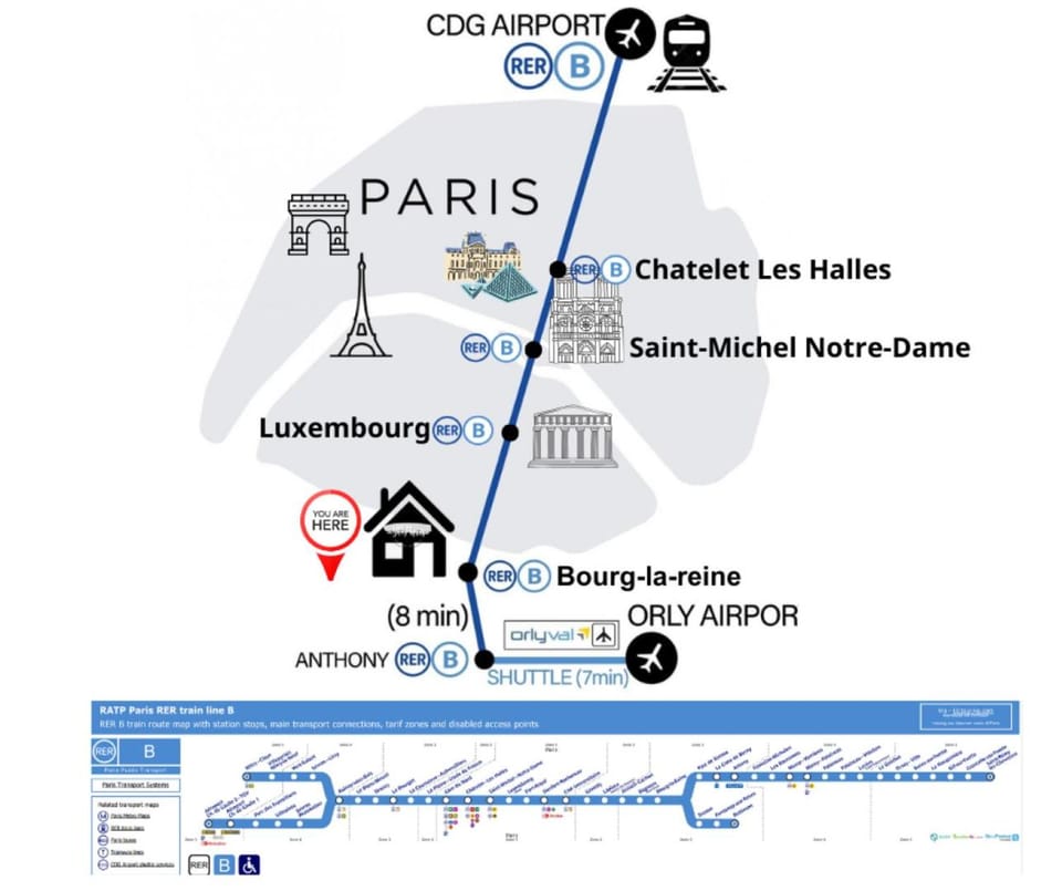Entire 60m2 apartment - Close to Paris - Parking - Kitchen - 2min RERB - Olympic'24 is located in Bourg-la-Reine, just 5.3 miles from Luxembourg Gardens and 5.5 miles from Paris Expo – Porte de Versailles.