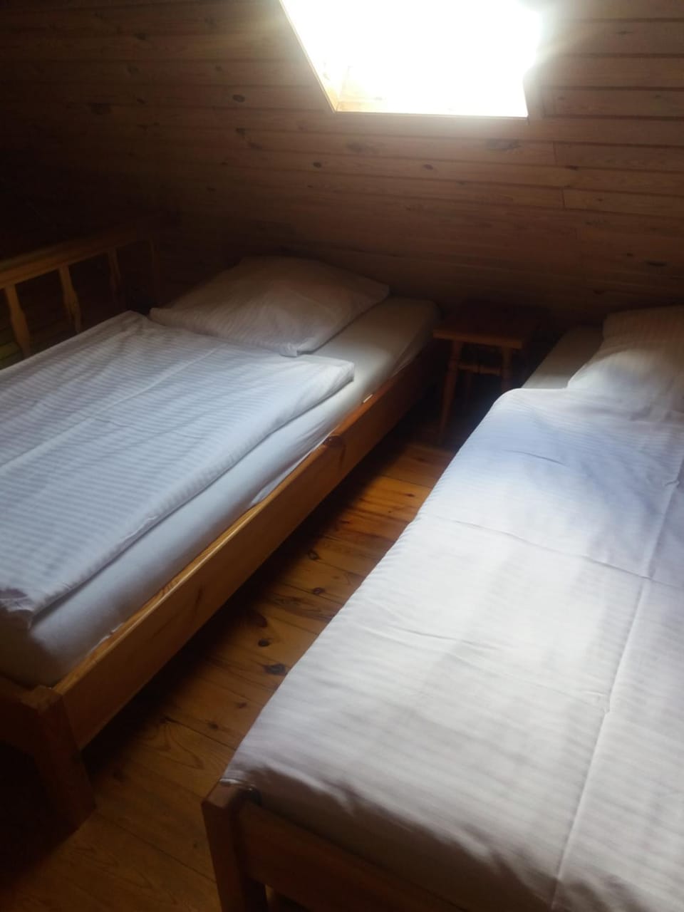 Great location next to the woodlands, very quiet overnight. Very nice furnace for wood that makes it really cosy and easy to manage. Split between sleeping area on upper floor and living quarters below worsk just fine.