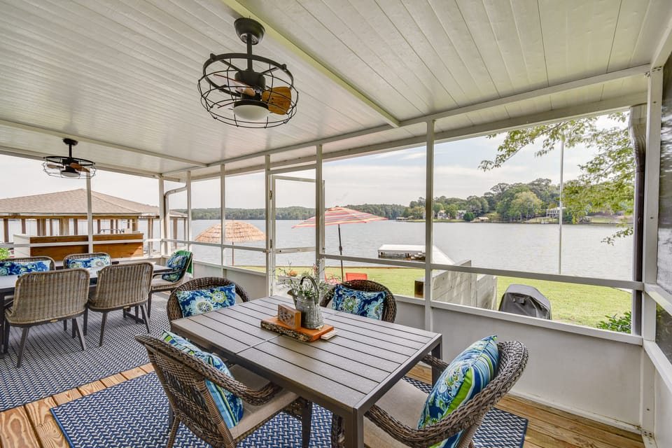 Your next lakefront getaway awaits at 'Quack of Dawn' in Dadeville! With 3 bedrooms, 2 full baths, 2 half baths, and 150 feet of calm waterfront, this vacation rental on Lake Martin offers a stunning backdrop for a group getaway. Bring your own boat, or rent one at the nearby Momentum Marine or Blue Creek Marina. The home's private dock and boat launch will make it easy to spend time on the water. After idyllic lake days, cook dinner in the modern kitchen and dine bug-free on the screened porch!