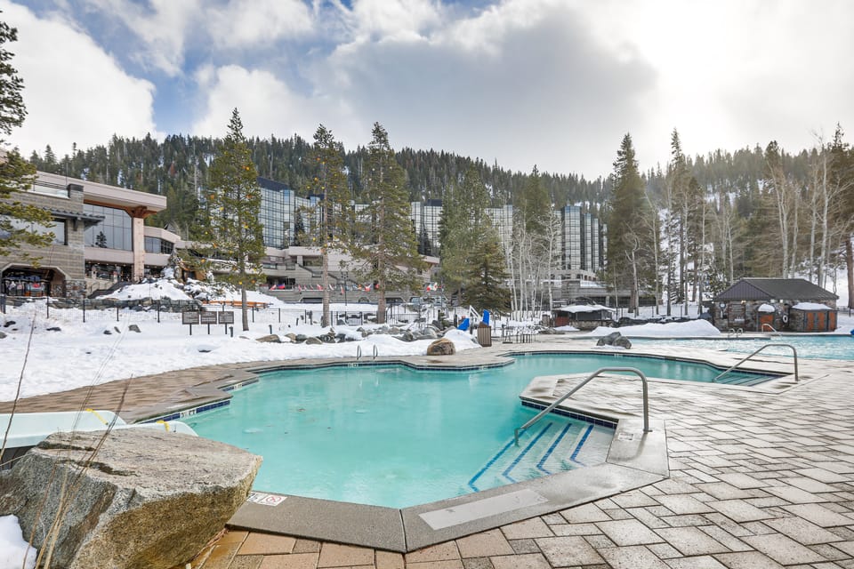 Never run out of things to do at this heavenly 1-bedroom, 1-bath vacation rental. Take the free shuttle to Palisades Tahoe Ski Resort or ice skate on-site. During the warmer months, indulge in hiking and mountain biking trails, or simply bask in the scenery of Lake Tahoe. End your days with a relaxing dip in the community heated pools, or unwind by the fireplace in the comfort of your own condo. Cross-country ski, golf, or visit the spa — this is the perfect mountain getaway for everyone.