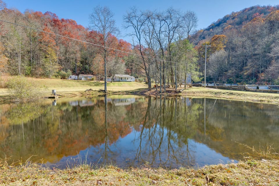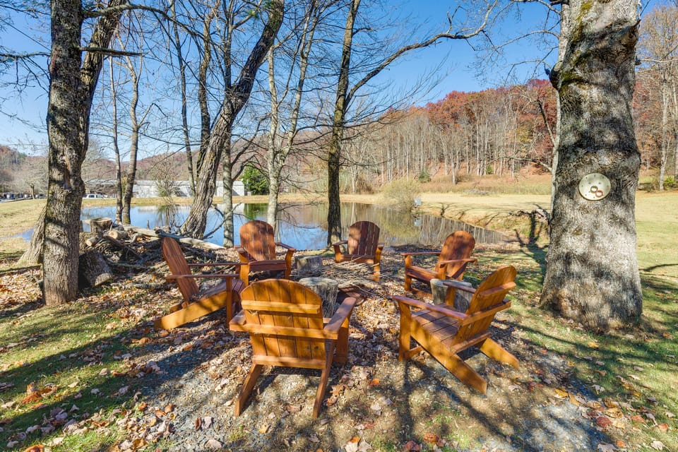 The Smoky Mountains await when you book this 3-bedroom, 2-bath Topton vacation rental! This home features a cozy living area with a wood-burning stove, a fully equipped kitchen, and an awesome outdoor space with a large yard for your pup to explore. Sip your morning coffee on the deck and relish the mountain views, then fish for trout in the on-site pond! Seeking an adventure? Hike the Appalachian Trail to Tellico Gap. Cap off your nights gathered around the fire pit for stargazing and s’mores.