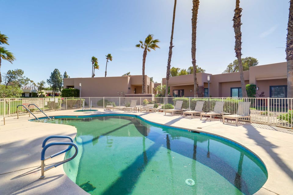 Enjoy a serene off-season getaway at this Cathedral City vacation rental in Desert Princess Country Club. This 3-bed, 2-bath condo offers peaceful mountain scenery and inviting indoor-outdoor living. Take advantage of on-site access to pools, hot tubs, tennis and pickleball courts, and a championship golf course — perfect for mild winter days in the desert. Then, unwind on the patio while dinner cooks on the grill. Book today!