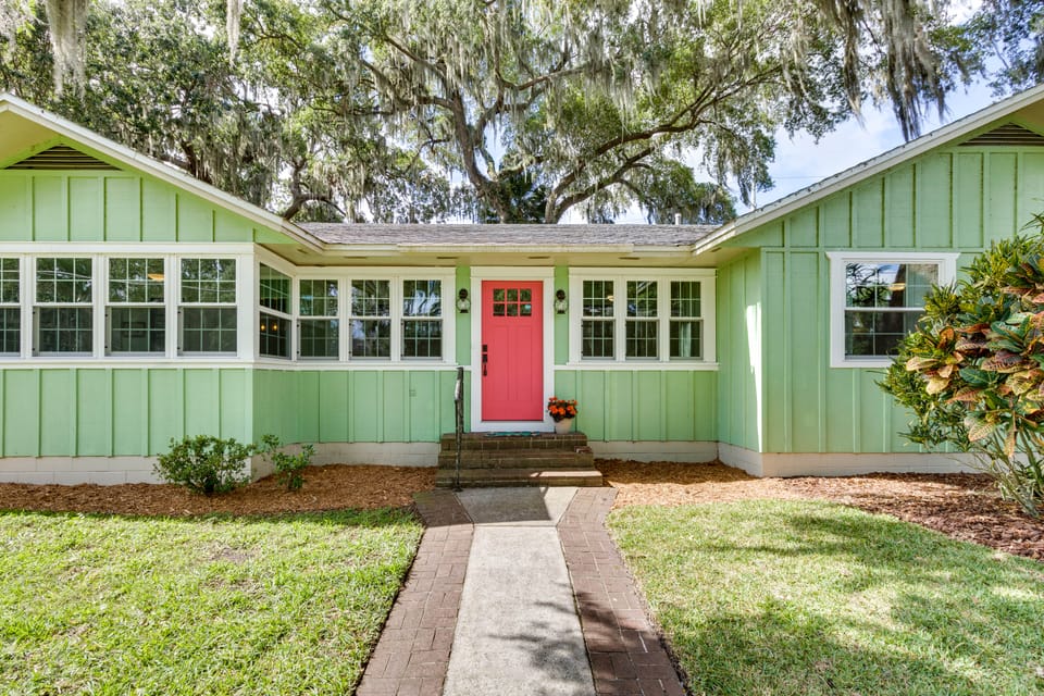 Experience a true Florida escape at 'Three Oaks Cottage,' a 2-bed, 2-bath Mount Dora home nestled along the tropical forest with 250-year-old trees! With close proximity to shopping, dining, and water activities, this vacation rental promises endless fun for your crew. Take a stroll across the Palm Island Boardwalk, visit the famous Mount Dora Lighthouse, or enjoy kayaking at the nearby Lake Gertrude.