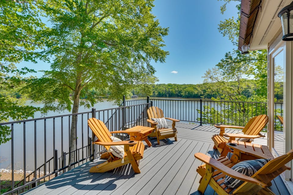 Access the joys of lake living when you escape to this 'Lakeview Haven’ vacation rental in Bracey. With direct access to Lake Gaston from the backyard, an impressive 2-tiered dock, and provided kayaks and paddleboards, this 4-bedroom, 2-bathroom home will spoil your family with endless outdoor fun! Don’t forget to take your boat for a spin and use the private boat slip or gaze at beautiful water views from the screened-in porch as the kids play cornhole and horseshoes.