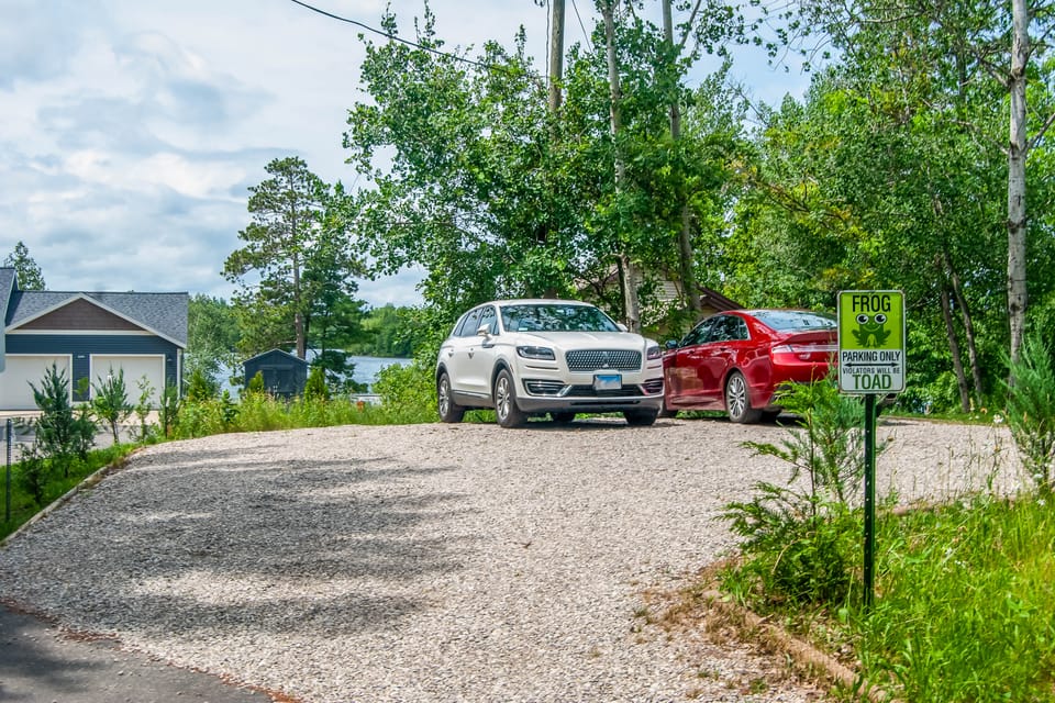PARKING: Shared gravel lot (3 vehicles), no boats, trailers, or campers