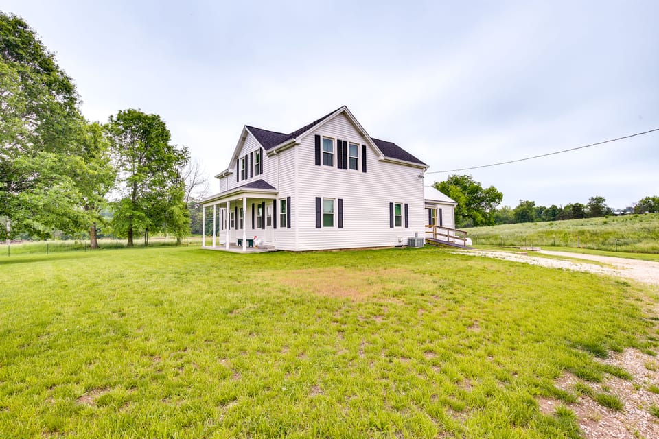 Surrounded by greenery on all sides, this private Washington house is the perfect escape for friends or families seeking a serene getaway to the Missouri wilderness. Take advantage of the rural-yet-convenient setting by visiting the Iron Spike Model Train Museum or spending the day at James W. Rennick Riverfront Park. Nestled on 5 acres, this 3-bedroom, 2.5-bathroom vacation rental offers a gas grill, an outdoor dining area, a foosball table, a Smart TV with a DVD player, and ample parking.
