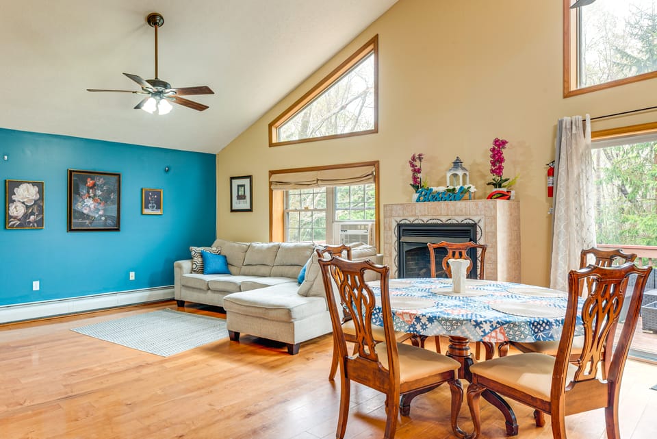Leave your worries behind and escape to the Poconos in this 5-bed, 3-bath vacation rental! Make a splash in Arrowhead Lake, take a dip into one of the 3 heated community pools, or hit the slopes at Camelback Mountain Resort! After a day of fun, come back to the comforts of home in this spacious mountain house. Spend the evening by the fire pit on the deck or play into the night in the well-equipped game room. There's room for everyone with 3,300 square feet of living space and 2 full kitchens!
