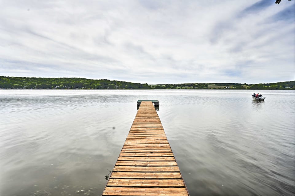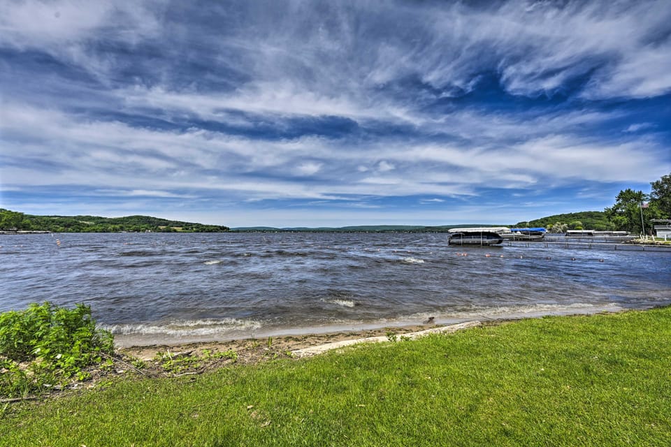 Treat yourself and your loved ones to a cozy getaway with endless waterfront fun at this 2-bedroom, 2-bath Lodi cabin on Lake Wisconsin. Named ‘Happy’s Haven,’ this vacation rental features serene lake views along with numerous coveted amenities, including a boat dock, kayaks, a paddleboard, 123 feet of lake frontage, and more. Start your day with coffee on the deck at sunrise. Then go fishing, water skiing, or snowmobiling, visit Devil’s Lake State Park, and have a nightcap around the campfire!
