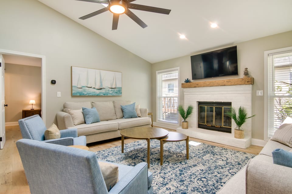 Visit this Ocean City vacation rental for seaside adventures and family-friendly fun! ‘The Blue Pearl’ is a 4-bedroom, 3-bathroom home with an outdoor patio and a cabana. Spend your days at the beach less than a mile away and come home to wash off in the outdoor shower. Explore Ocean City Boardwalk or visit Jolly Rogers Amusement Park for fun-filled adventures. At the end of the day, head to the game room for some fun or watch a movie in front of one of the Smart TVs.