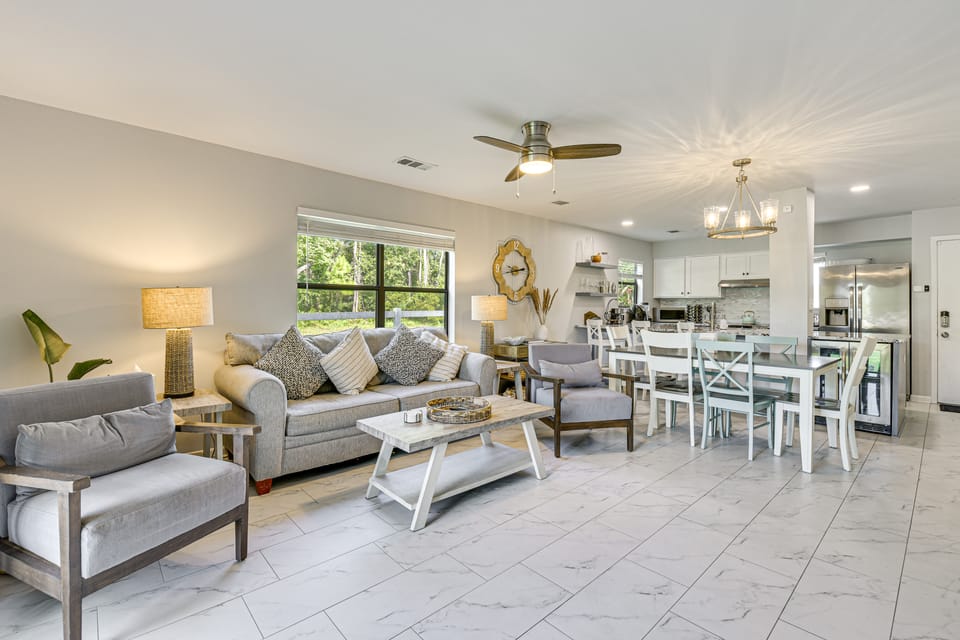 An effortless Florida getaway awaits at this bayfront 2-bedroom, 2.5-bath Mary Esther vacation rental! Perfect for families or friends, the townhome features a bright, modern interior, along with access to a community pool, beach, and 2 kayaks for exploring the Santa Rosa Sound. Soak up the sun at Navarre Beach, greet the animals at the Gulf Breeze Zoo, or explore Fort Walton Beach. After the day’s adventures, relax on your private patio!