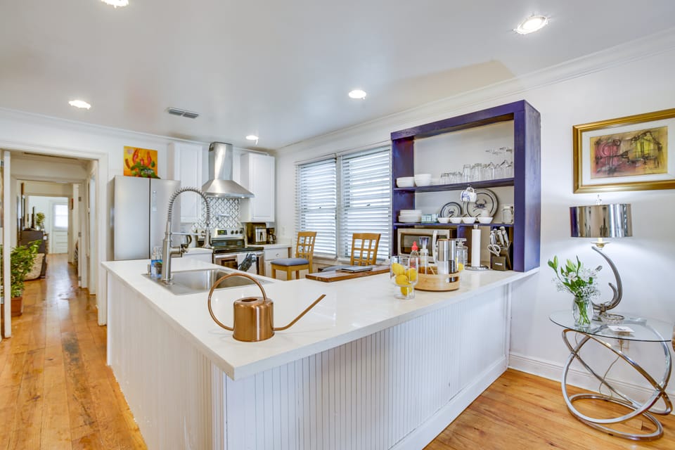 Welcome to 'Cadillac Cottage,' a vacation rental in New Orleans! Boasting an eclectic blend of vintage and modern furnishings, a vast artwork collection, and an airy open-concept kitchen, this 2-bed, 1-bath home exudes the vibrancy that this destination is known for. Whether you're planning to visit City Park, explore the sights and sounds of Bourbon Street at the core of the French Quarter, or embark on a waterfront adventure from Bayou St. John, you'll be able to do so from here. Book now!