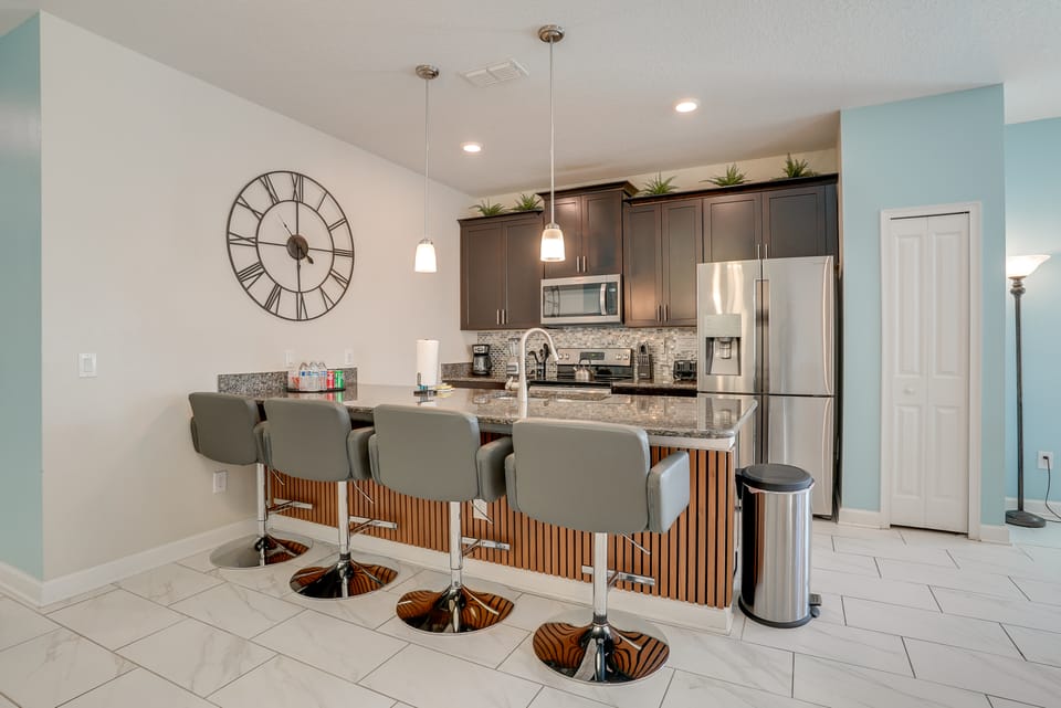 Your next magical getaway to Kissimmee, Florida, awaits with this 5-bedroom, 4-bath vacation rental as your home base! Boasting ample entertainment space, a full kitchen, access to a variety of community amenities, and a prime location just a short drive from Disney World and Universal Studios, this home offers a combination of comfort and convenience for families. After a day of adventure, head back home to float along the community lazy river or stream your favorite shows on the Smart TV.