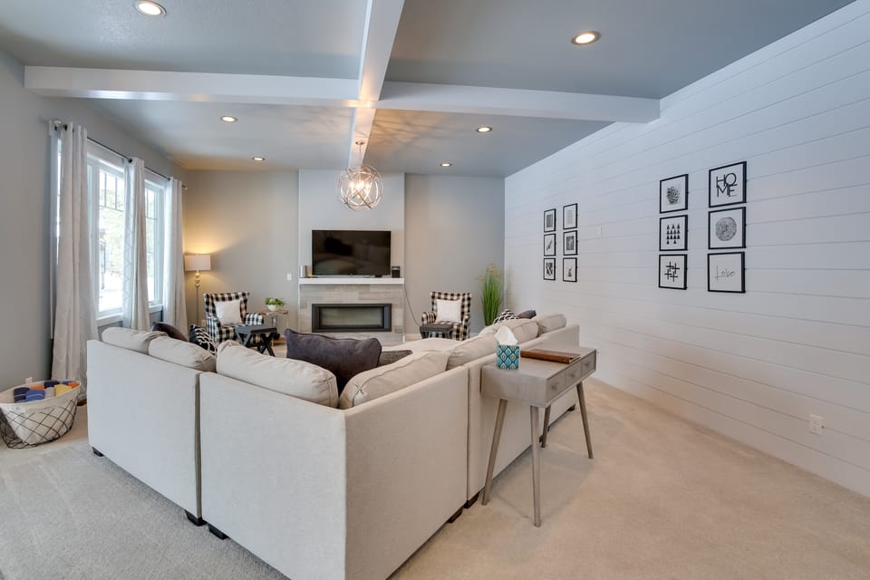 INDOOR LIVING: 5 Smart TVs w/ cable, DVD player, gas fireplace, high chair, board games, central A/C & heat