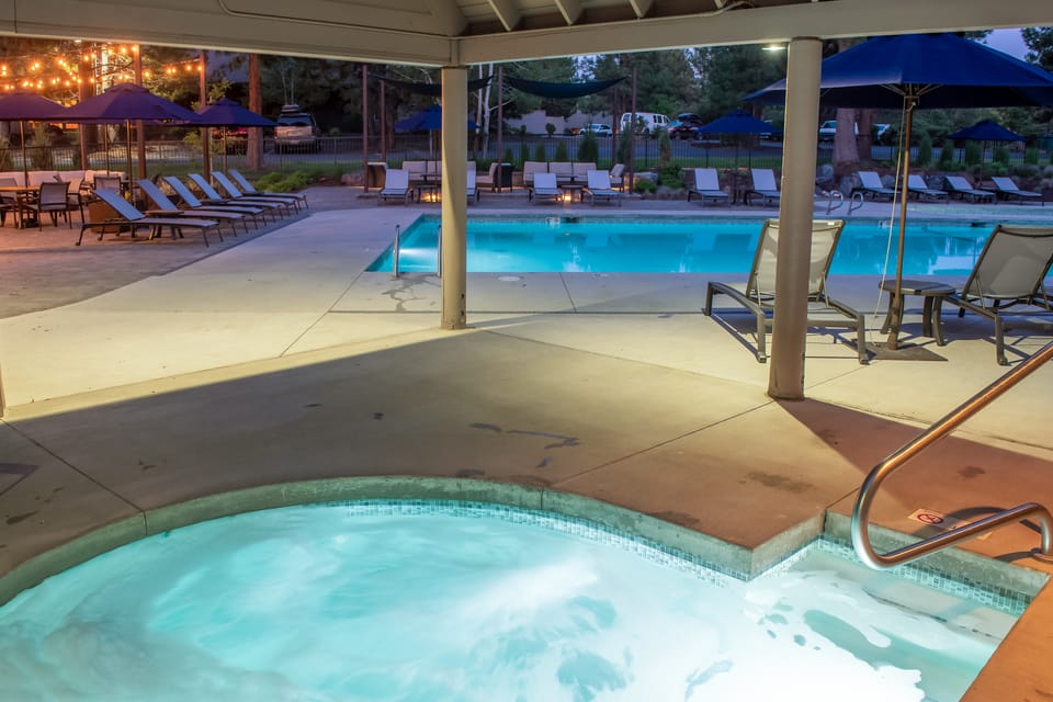 Yes, a swimming pool is available for use at Pool & River Access: Mt Bachelor Condo w/ Patio!. Enjoy the water!