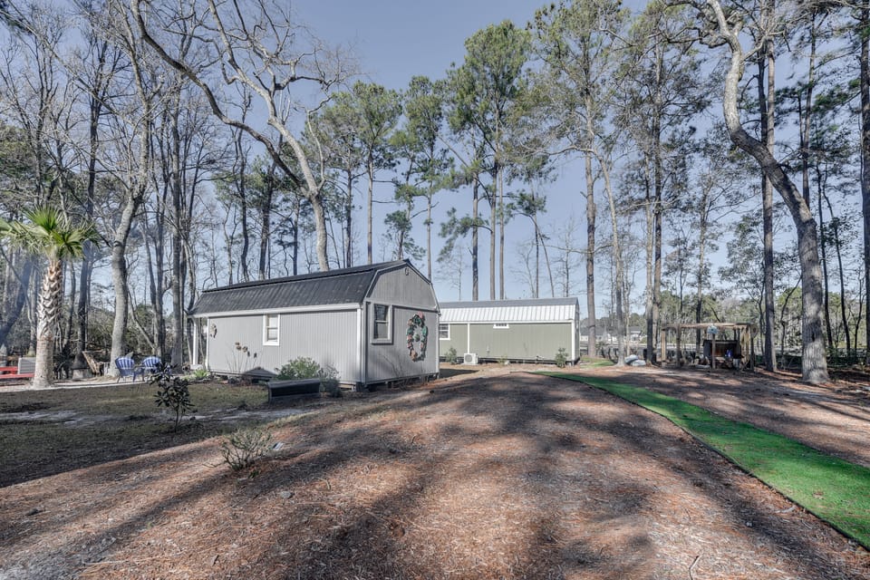 A cozy cabin retreat awaits at this 1-bathroom studio vacation rental in Calabash, NC. With a prime location surrounded by nature and just 4 miles from Sunset Beach, you’ll easily be able to explore the area then return each evening to recharge. Sip your morning coffee on the porch, practice your swing at The Pearl Golf Course, or indulge in delicious seafood at The Oyster Rock Waterfront Seafood. At sunset, gather around the shared fire pit to stargaze and listen to the charming nearby frogs.