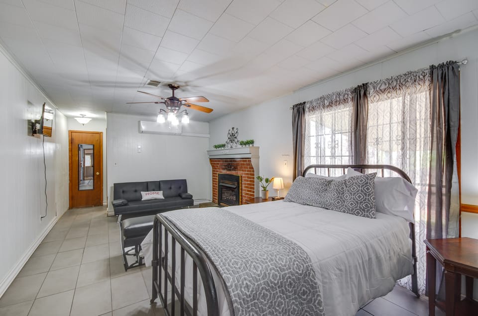 Experience the charm of Silver Creek at this peaceful vacation rental. Start your day with breakfast in the full kitchen before visiting Lake Jeff Davis or taking the kids to Grand Paradise Waterpark. After your adventures in the sun, return home fir stories around the fire pit, or to sit by the cozy fireplace. This 1-bedroom, 1-bath retreat also offers an additional sleeping area in the living space, outdoor dining areas, and a grill!