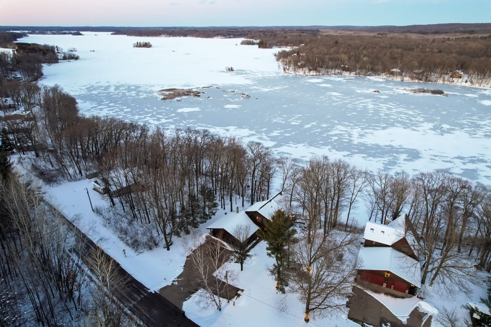 Cabin was very warm, comfortable and relaxing with two gas fireplaces and One log fireplace, Despite -9° temperature outside. We were happy to have garage access from the inside of the house so we could pull our car in and stay warmer. The upstairs king bed was very comfortable, with a gas log fireplace at our feet. Newly remodeled bathroom is very fresh and up-to-date With a walk-in shower and Double marble sinks. Kitchen had all the latest appliances And plenty of cookware. There were two large screen, TVs with plenty of network access. Through the big picture window we enjoyed seeing the white swans, geese, and ducks flying over the frozen lake. The property manager, Ivory, was very accommodating and helpful. Only caution is that the roads can be icy in the winter since The area is wooded and roads are shaded.