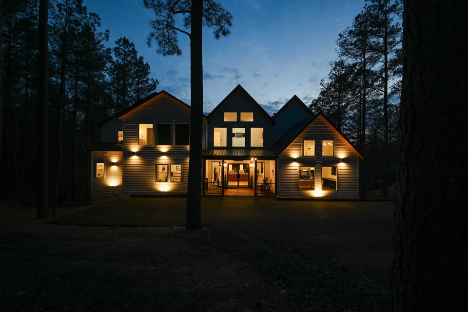 Days on the lake and nights in the hot tub await at this newly built vacation rental in Broken Bow! The nearly 4,000-square-foot cabin boasts 5 bedrooms, 7 bathrooms — including 2 half baths — a game room, and an incredible outdoor space. There’s even a private playground for the kiddos! Plus, you’ll be conveniently located just 4 miles from the Hochatown Area for easy access to lakefront fun. In the evening, whip up dinner in the gourmet kitchen before roasting s’mores by the fire pit.