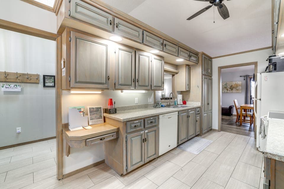 Lakeside living awaits at this 4-bedroom, 3-bath house in Holiday Island, AR! Located less than 3 miles from Table Rock Lake and a full-service marina, this vacation rental is perfect for groups looking to get on the water! When you’re done riding the wake, practice your golf swing at the Holiday Island Championship golf course, or take a short drive to Eureka Springs and experience the historic surroundings! Return home for a family meal in one of the many dining areas. Book now!