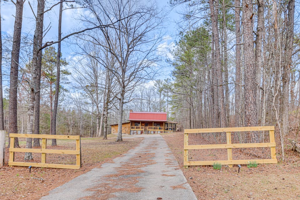 Experience the perfect mix of relaxation and outdoor recreation at this Cropwell vacation rental! This peaceful 3-bedroom, 2-bath cabin allows pets and boasts a well-appointed screened porch and a fire pit for evening s'mores. Head to the nearby Coosa Island Marina to go boating on Logan Martin Lake or venture out to watch a race at the Talladega Superspeedway. Afterward, dine al fresco or head inside to cozy up in front of the TV. A memorable stay at 'Rustic Retreat' awaits!