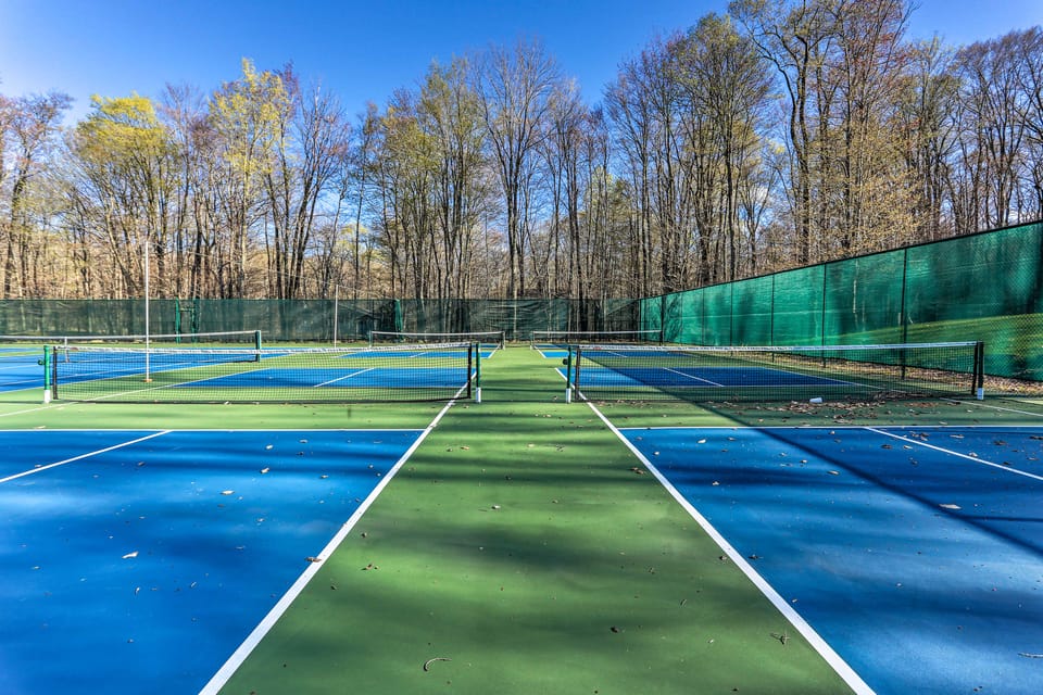 Look no further than this 3-bedroom, 2-bathroom Gouldsboro vacation rental for your next family vacation! The tranquil home, nestled amid picturesque wooded surroundings, offers the perfect retreat. Enjoy beach access for sunbathing and indoor/outdoor community pools for staying cool. With a creekside fire pit and a spacious deck, this home is an oasis of relaxation. Explore nearby attractions like Big Pocono State Park and Promised Land State Park for more outdoor adventures!
