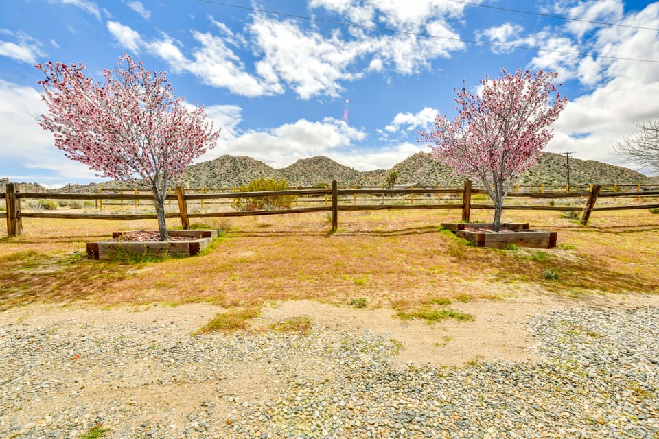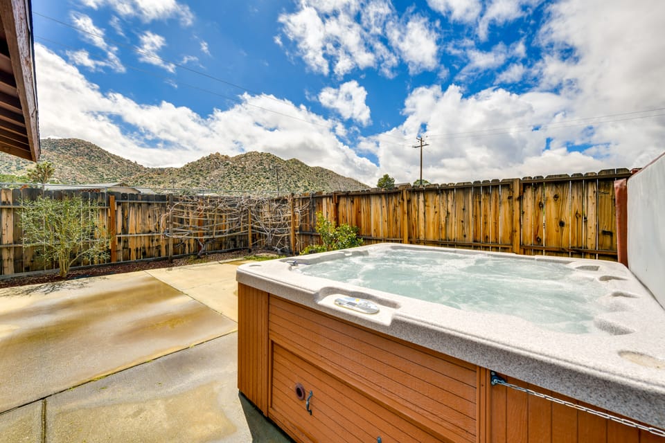 Get away from the hustle and bustle of city life with this 3-bedroom, 2-bath California vacation rental as your base. Settled in Pioneertown, this spacious home offers 2 wood-burning stoves, 2 Smart TVs, and a private hot tub. Enjoy the picturesque views while soaking in the hot tub or wander inside to cozy up on the sectional sofa. Lace up your shoes to hike Black Rock Canyon Trailhead and other nearby trails. The King of Hammers event is nearby so feel free to bring your off-roading vehicles!