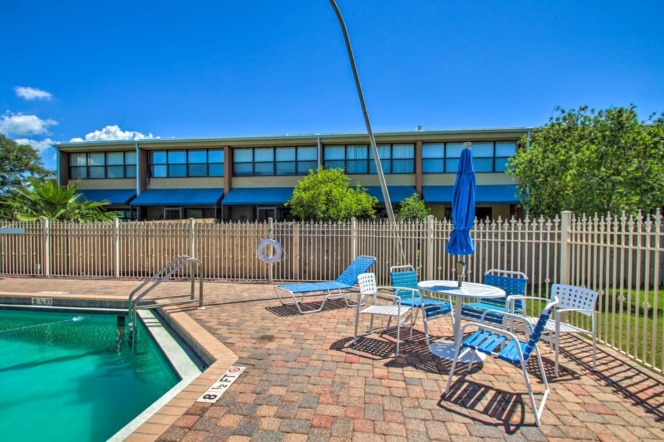 What amenities are available at Gulf Breeze Escape w/ Patio + Community Pool!?